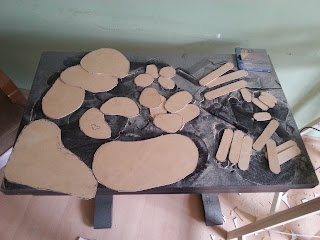 Let's start from cutting out of MDF board large pieces that will act like forest area and small ones that we will use as a base for the trees. We will be able to move them to make troops manoeuvring inside forest much easier. End result will be satisfactory.